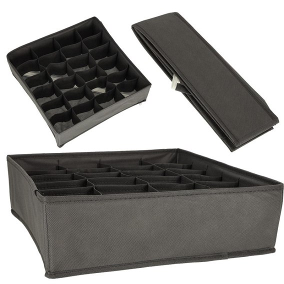 Praktyczny organizer na bieliznę upora się z każdym bałaganem w szufladzie. Dzięki 24 przegrodom posegregujesz skarpetki, bieliznę, ale też krawaty, podkoszulki, stroje kąpielowe czy nawet paski!