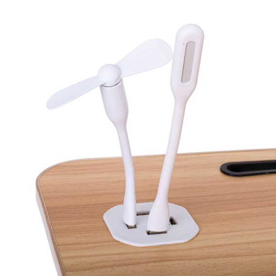 W zestawie znajduje się również wiatraczek i lampka - oba przedmioty są z końcówką USB, aby móc je podpiąć w panelu USB.